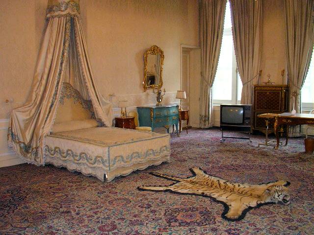 下の写真は、左から順に、第3夫人の寝室、シャーの執務室で、右端の足だけの写真はちょっと変わっているが、これはパフラヴィー1世の像で、第2次世界大戦で破れた印として上半身を破壊されたものとか。