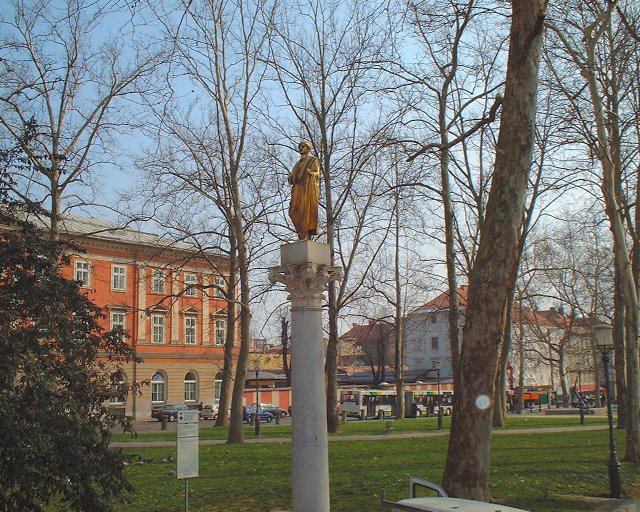 上の写真、一番左は会議広場で、中央の像はエモナの町人といわれ、ローマ時代の作品だそうです。銅の上に金箔を施したものですが、お墓の飾りに使われていたらしいとのこと。